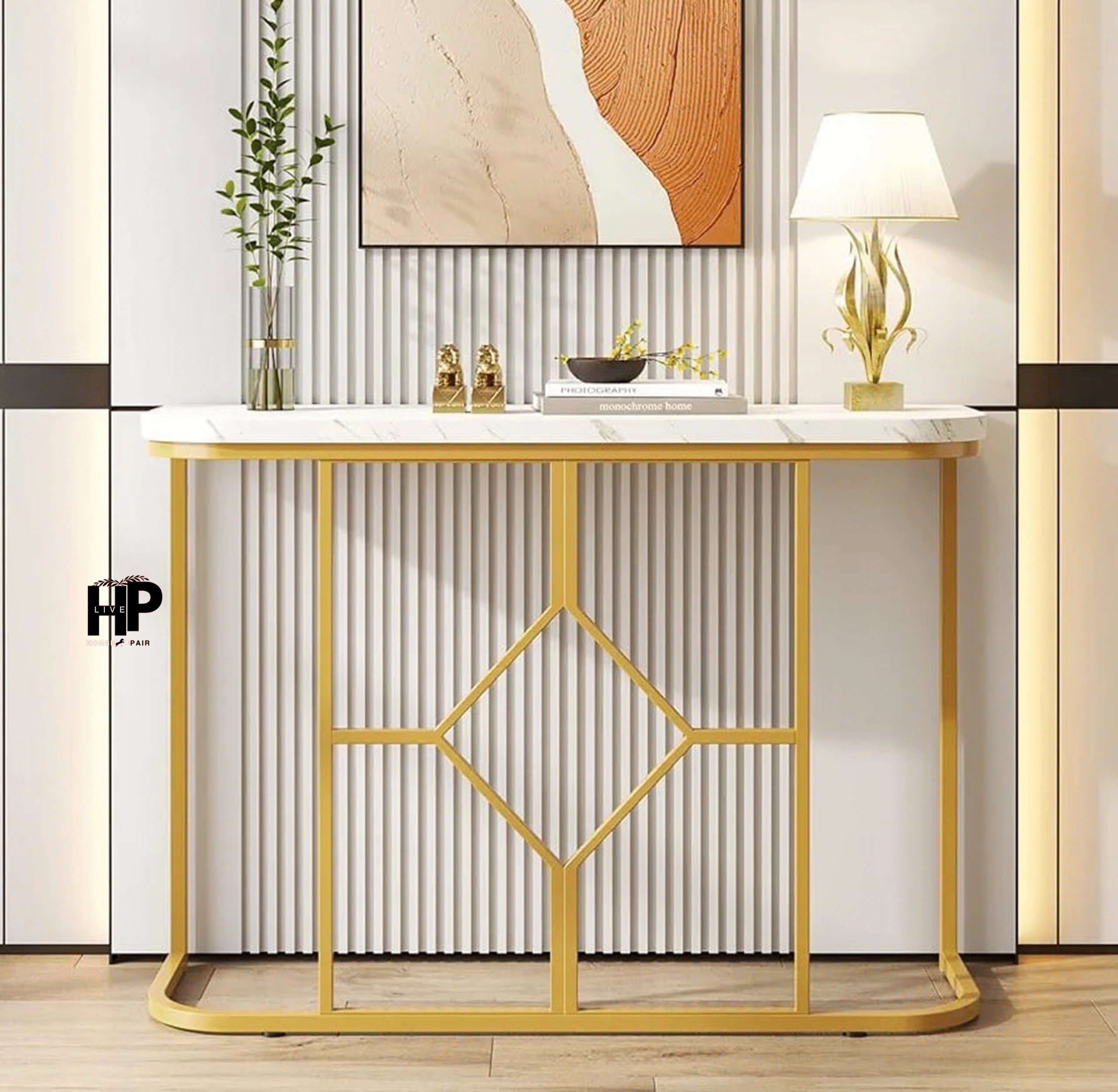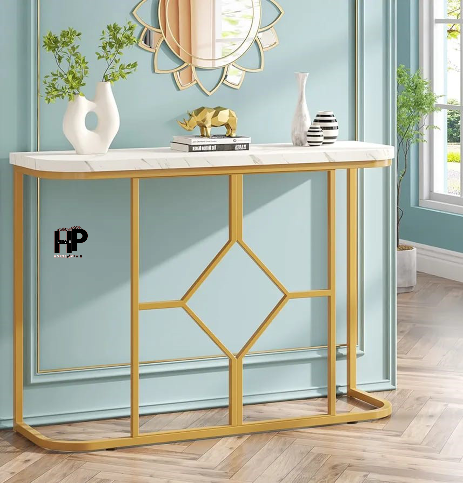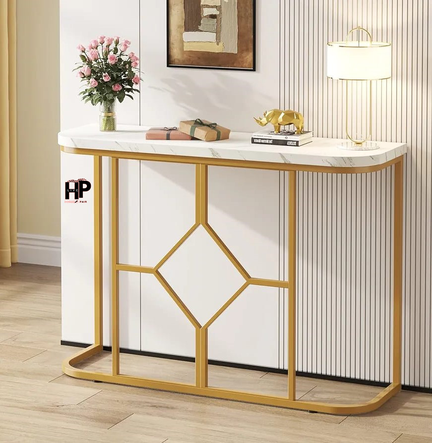 Elegant Console Table with White Marble Top – Modern Entryway & Living Room Accent