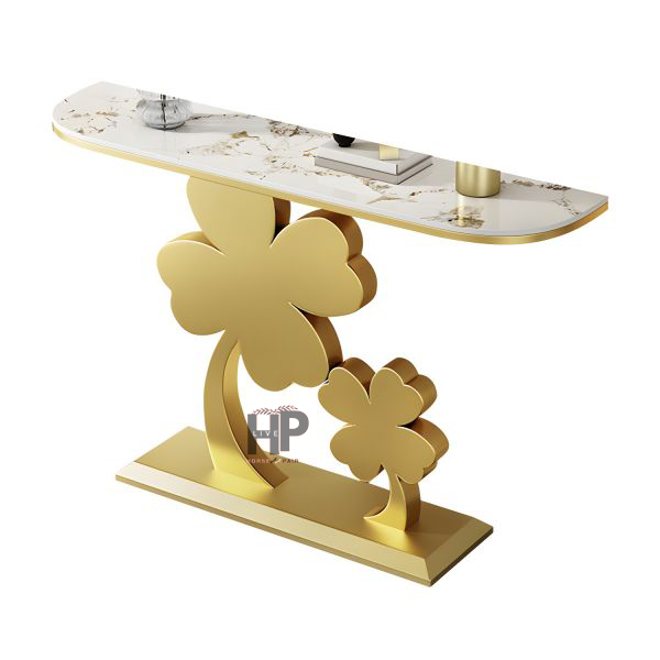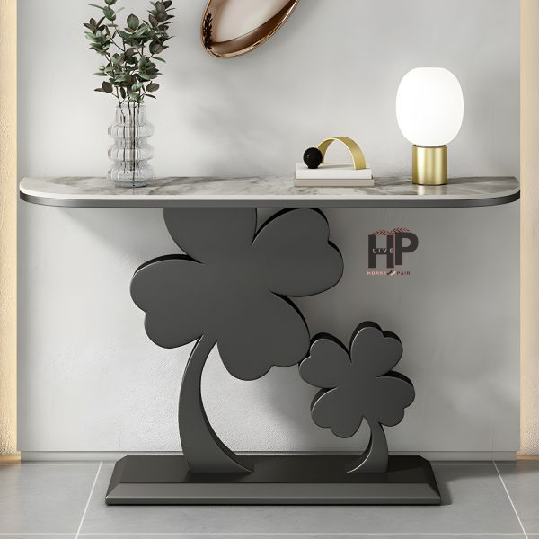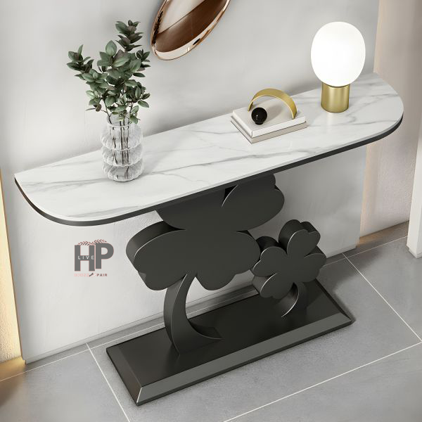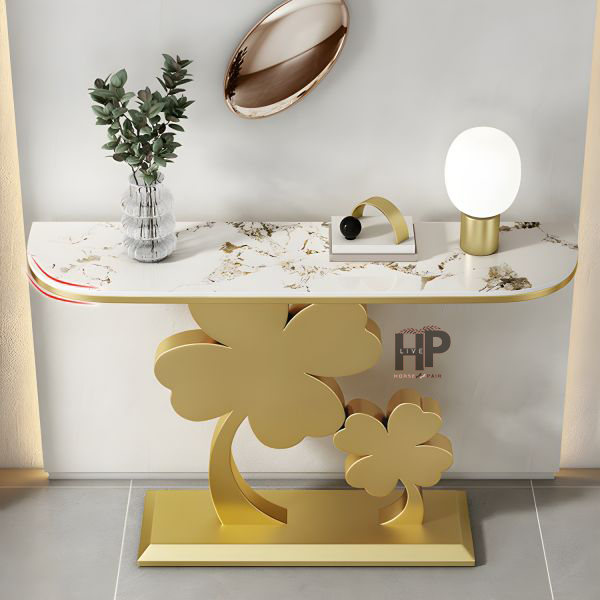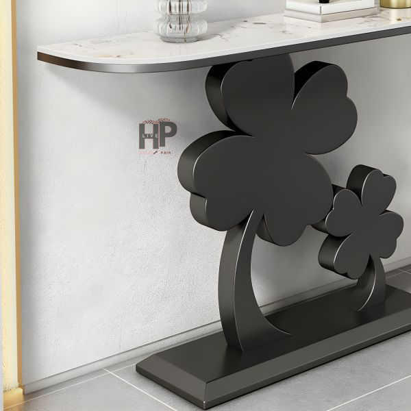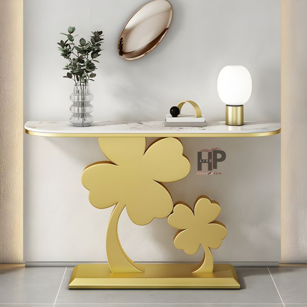 Flower Design Console Table with Marble Top – Luxury Entryway Accent Furniture