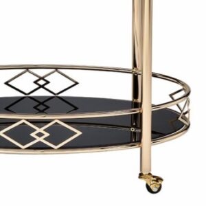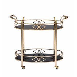 Elegant Oval Bar Cart Trolley – Two-Tier with Black Glass Top | Modern Rolling Drink Cart for Home, Kitchen, or Dining Room